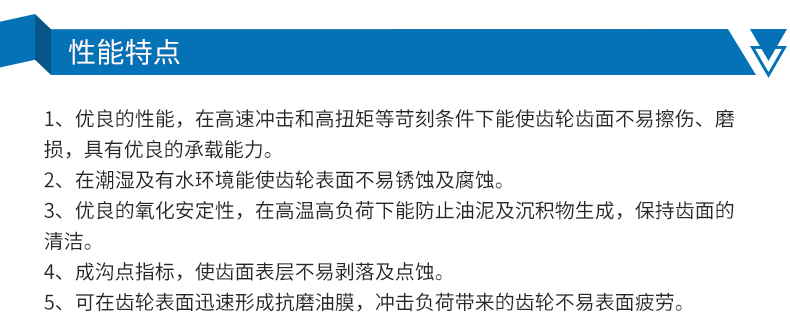 ●優良的抗磨性,在高速沖擊和高扭矩等苛刻條件下能有效地防止齒輪齒面的擦傷、磨損,具有優異的承載能力。